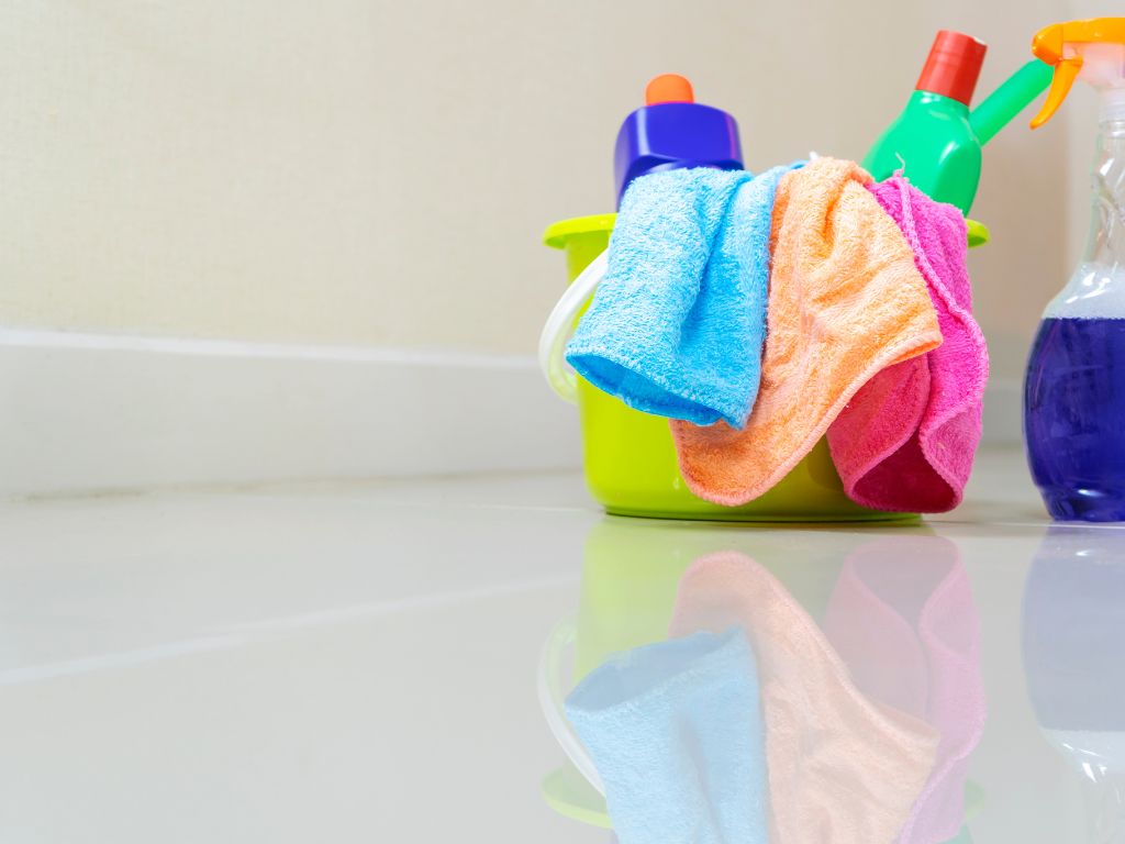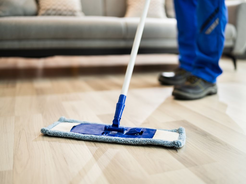 Limpeza profunda e higienização de diferentes tipos de pisos, com produtos adequados a cada material.